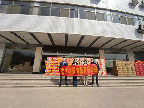 濰坊大順食品有限公司捐贈(zèng)防疫物資,疫情防控人員夜以繼日保障廣大人民群眾的健康,我司為防控人員提供幫助,送去溫暖,為疫情抗擊工作做出微弱貢獻(xiàn),守護(hù)我們共同的家園。濰坊大順食品有限公司是一家專業(yè)生產(chǎn)低溫油炸果蔬脆片的工廠,我們有60多種產(chǎn)品,有12年的生產(chǎn)經(jīng)驗(yàn)。產(chǎn)品出口日韓、歐美多個(gè)國家。